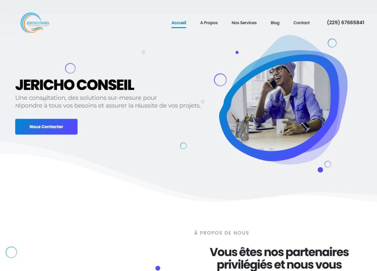 Création du site de présentation pour la société Jericho Conseil, spécialisée dans le conseil stratégique et le développement organisationnel.