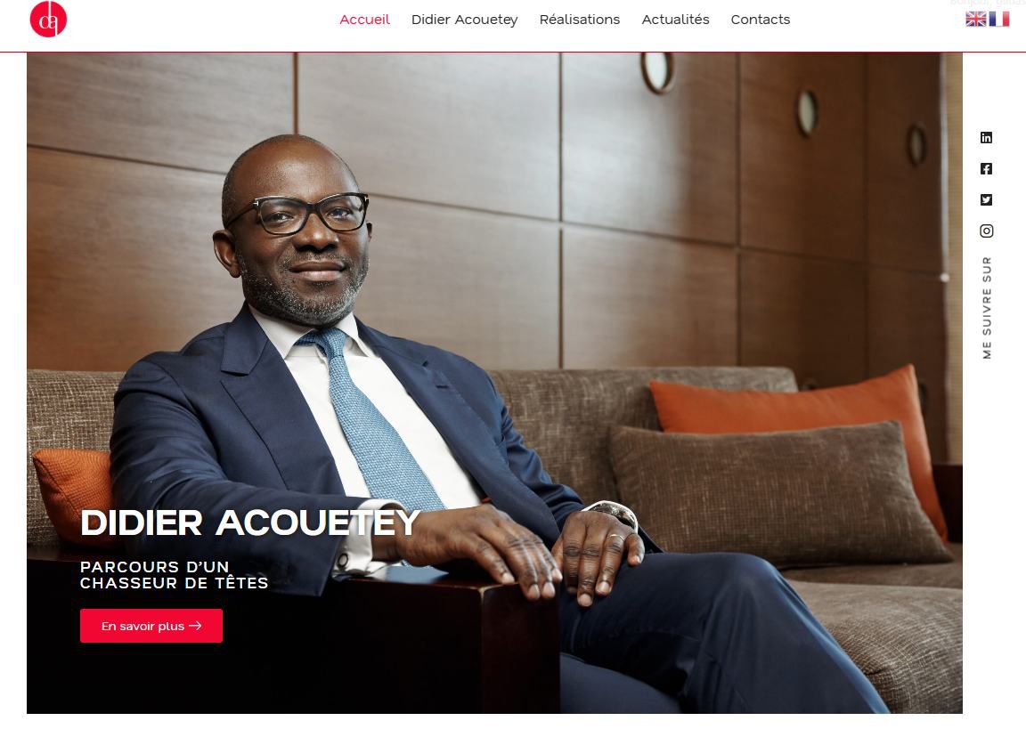 Conception du site personnel du consultant Didier Acouetey. Présentation de ses activités, publications et conférences.
